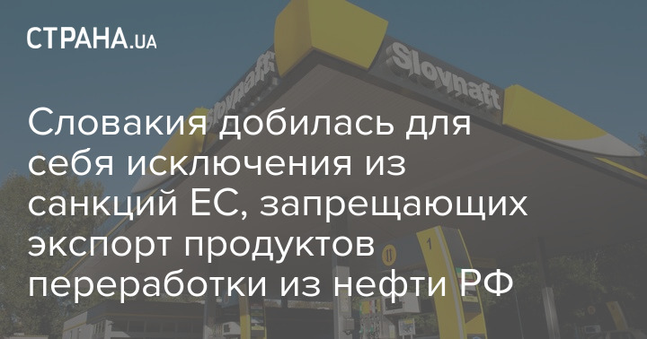 Словакия добилась исключения из санкций Европейского союза в отношении российской нефти. Это позволит ей продолжать экспортировать переработанные из российской нефти продукты, в том числе дизельное топливо, в Украину, испытывающую энергетический голод.