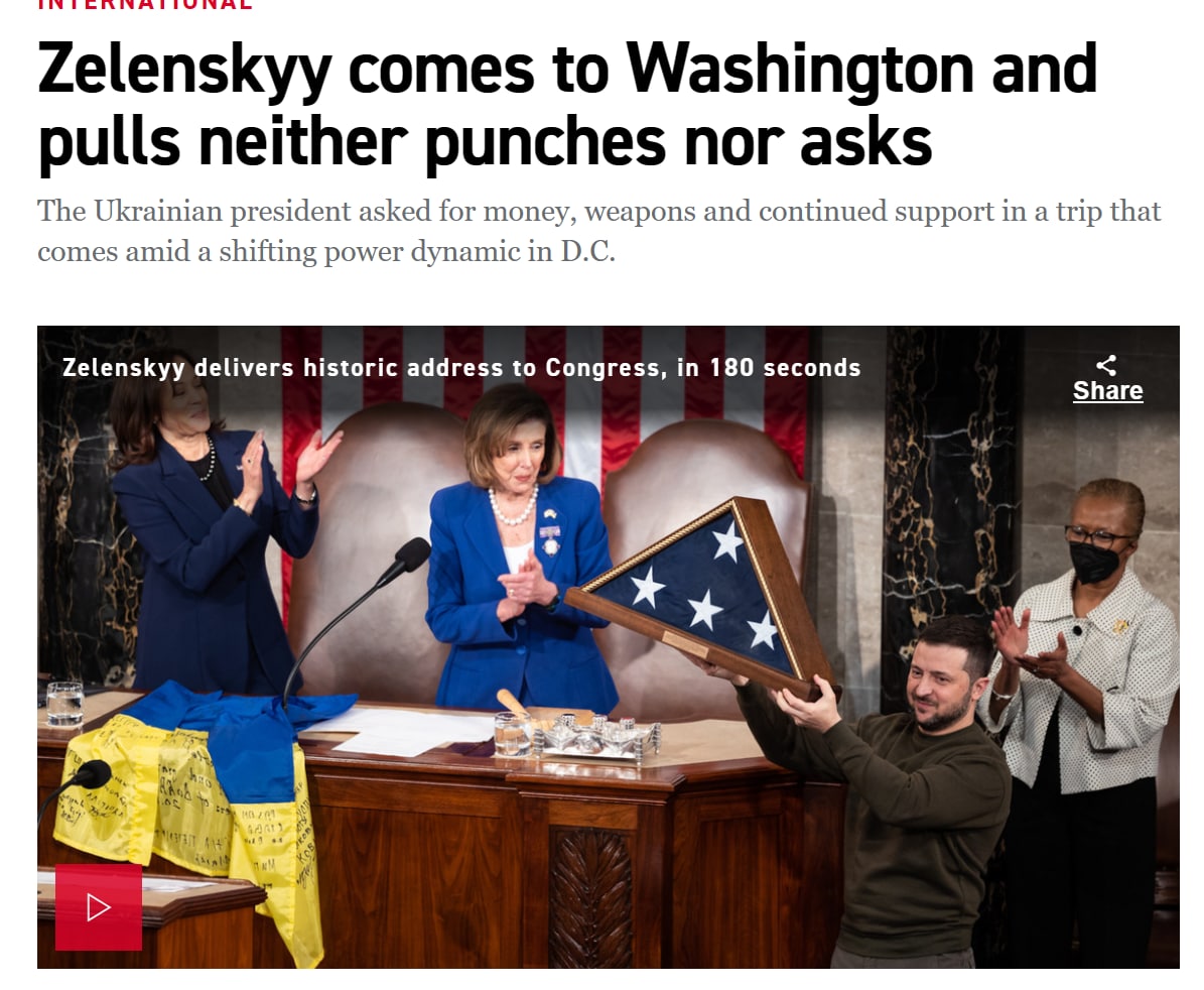 10:35 Издание Politico анализирует реакцию республиканцев на визит Зеленского в США и его выступление в Конгрессе.