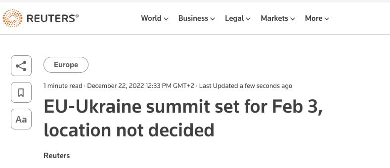 23.12 Советник Офиса президента Алексей Арестович заявил, что не будет сообщать детали того, что происходит на фронте, поскольку это может стоить жизней украинских солдат.