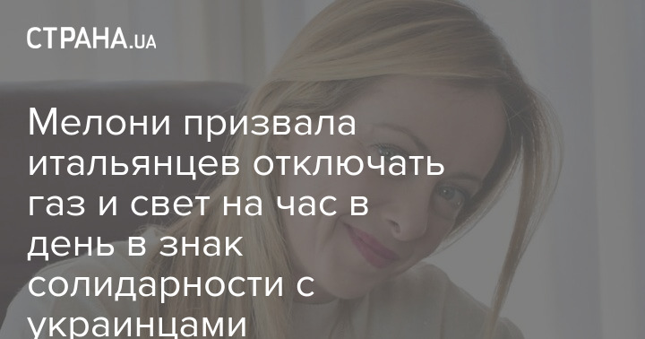 Премьер-министр Италии Джорджия Мелони призвала итальянцев отключать газ и электроэнергию на час в день, чтобы прочувствовать положение украинцев и выразить с ними солидарность.