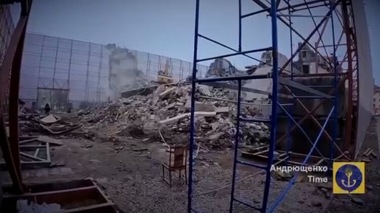 "Полному демонтажу подлежит задняя и центральная часть театра, однако фронтальную оставят целой как "основу реконструкции". То есть демонтируются только те части здания, которые доказывают бомбардировку, а не вымышленный пропагандой подрыв изнутри", - пишет Андрющенко в своем телеграм-канале и публикует еще одно видео продолжающегося демонтажа.