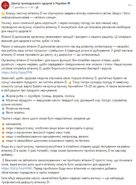 Медики объяснили украинцам, кому и что нужно есть и делать, чтобы зимой хватило витамина Солнца