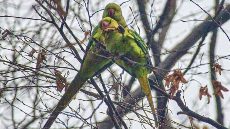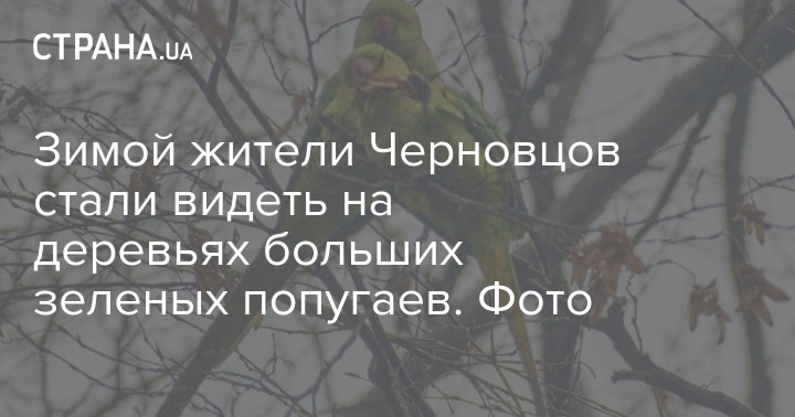 Зимой жители Черновцов стали видеть на деревьях больших зеленых попугаев. Фото