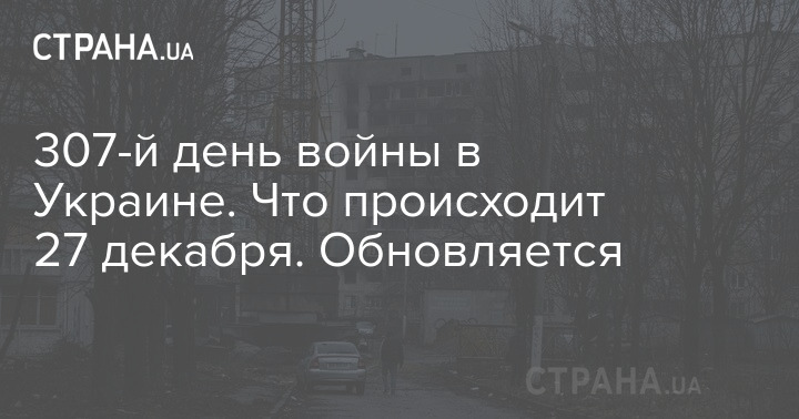Во вторник, 27 декабря, в Украине идет уже 307-й день войны с РФ.