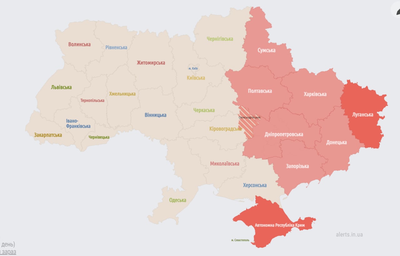 09:35 Воздушная тревога начала шириться по Украине.