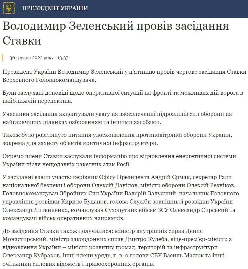 Президент Украины Владимир Зеленский 20 декабря провел заседание Ставки Верховного Главнокомандующего.