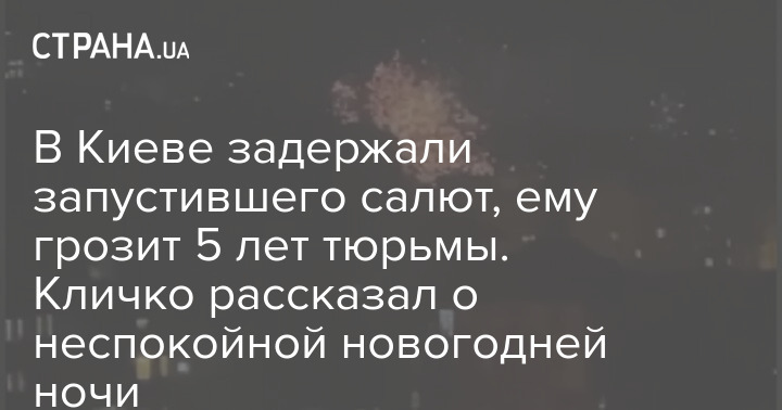 В Киеве задержали запустившего салют, ему грозит 5 лет тюрьмы. Кличко рассказал о неспокойной новогодней ночи