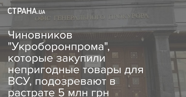 Чиновников "Укроборонпрома", которые закупили непригодные товары для ВСУ, подозревают в растрате 5 млн грн