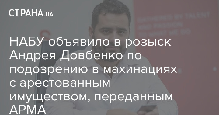 НАБУ объявило в розыск Андрея Довбенко по подозрению в махинациях с арестованным имуществом, переданным АРМА