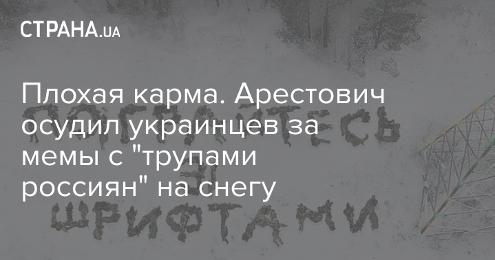 Советник Офиса президента Алексей Арестович раскритиковал украинцев, распростряняющих картинки с надписями, сделанными якобы "трупами россиян".