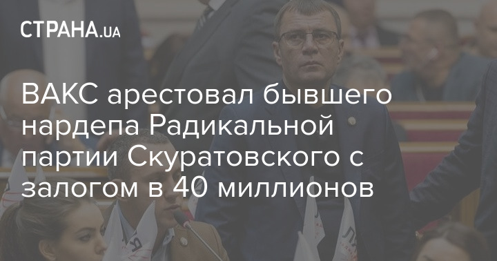 Высший антикоррупционный суд заключил под стражу бывшего народного депутата от Радикальной партии Сергея Скуратовского. Альтернативой ареста судья ВАКС определил 40 млн грн. залога.