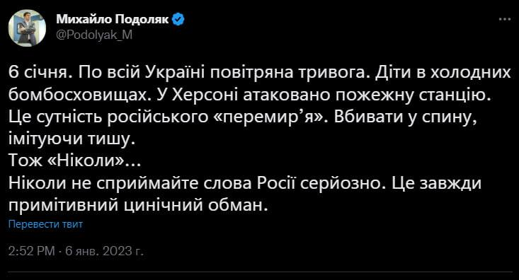 09.30 Путин объявил "рождественское перемирие" чтобы ударить по репутации Украины, заявили в Американском институте изучения войны.
