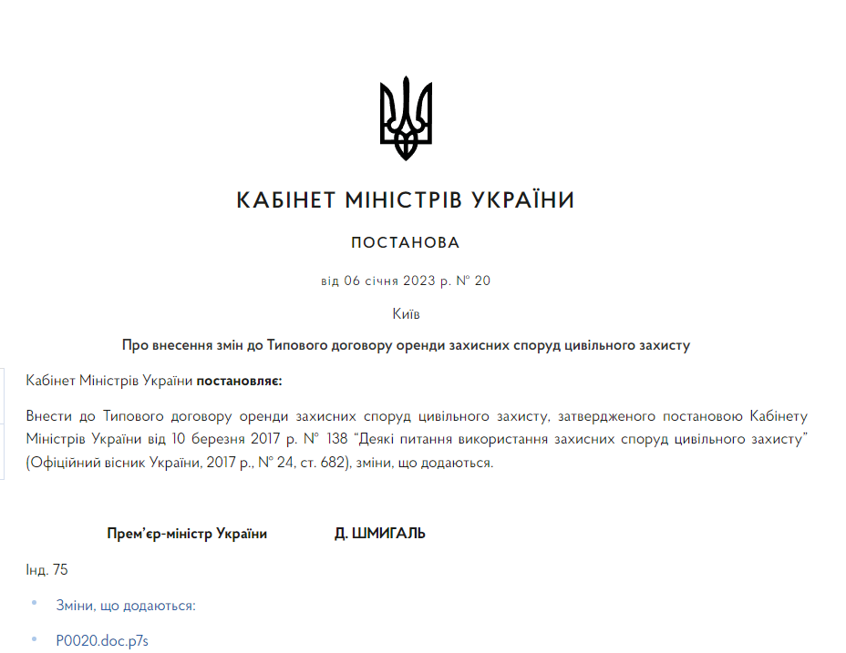 Кабинет министров Украины внес изменения в Типовой договор аренды защитных сооружений гражданской защиты. Во время режима повышенной готовности, возникновения чрезвычайной ситуации, введения чрезвычайного положения и в особый период разрешен несанкционированный доступ.