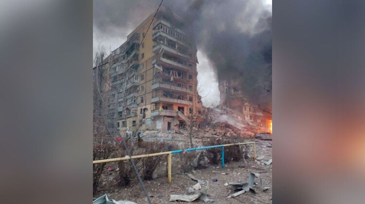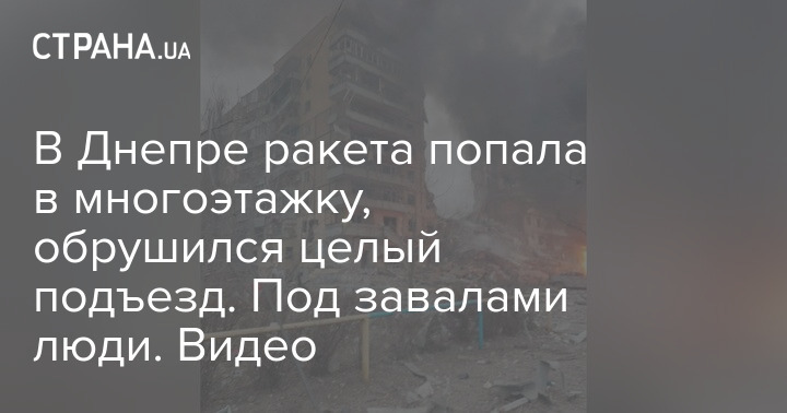 В ходе массированной атаки по Украине одна из ракет прилетела в многоэтажный дом в Днепре. Разрушен как минимум один подъезд, под завалами находятся люди.