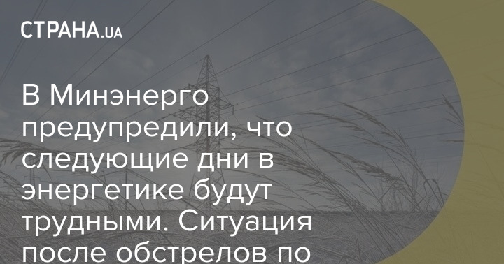 В Минэнерго предупредили, что следующие дни в энергетике будут трудными. Ситуация после обстрелов по регионам
