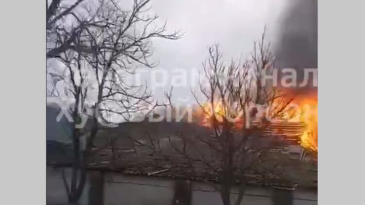 На видео можно заметить разрушения в частном секторе после удара и отработанные части боеприпасов. В результате обстрела загорелось несколько домов.