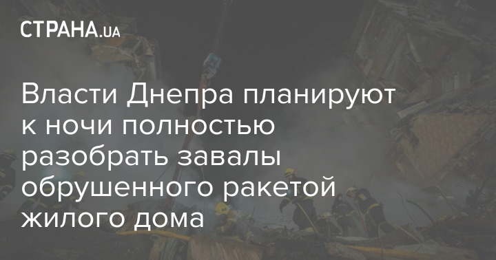 Власти Днепра планируют к ночи полностью разобрать завалы обрушенного ракетой жилого дома