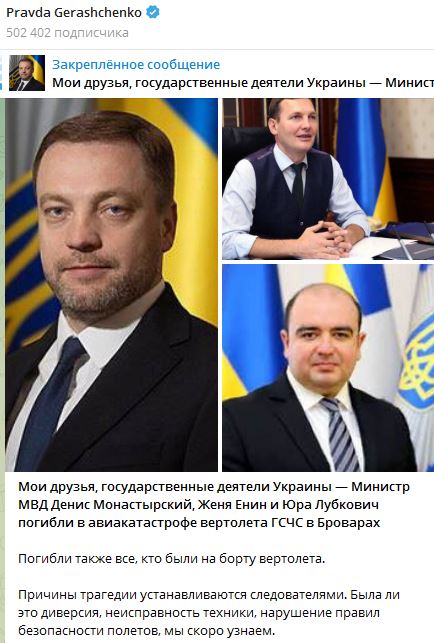 Потом появилась официальная информация ГСЧС по авиакатастрофе в Броварах.