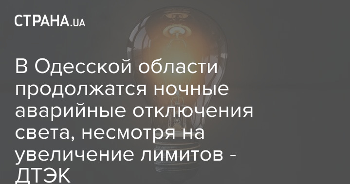 В Одесской области продолжатся ночные аварийные отключения света, несмотря на увеличение лимитов - ДТЭК