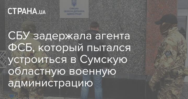 "В результате многоэтапной спецоперации в Сумах задержан агент ФСБ, получивший враждебную задачу устроиться в Управление оборонной работы областной военной администрации", - рассказали в спецслужбе.