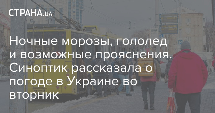 Температура воздуха в ближайшую ночь составит 0...-4 градуса, в восточной части Украины -4...-8 градусов. Завтра в течение дня в большинстве областей Украины ожидается от 1 градуса мороза до 3 тепла, в Закарпатье и Крыму +4...+8 градусов.