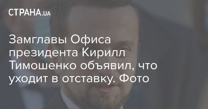 Заместитель главы Офиса президента Кирилл Тимошенко подтвердил, что написал заявление на увольнение с занимаемой должности, о чем накануне сообщали источники "Страны". Также он поблагодарил президента Украины Владимира Зеленского "за его доверие и возможность делать хорошие вещи каждый день и каждую минуту".