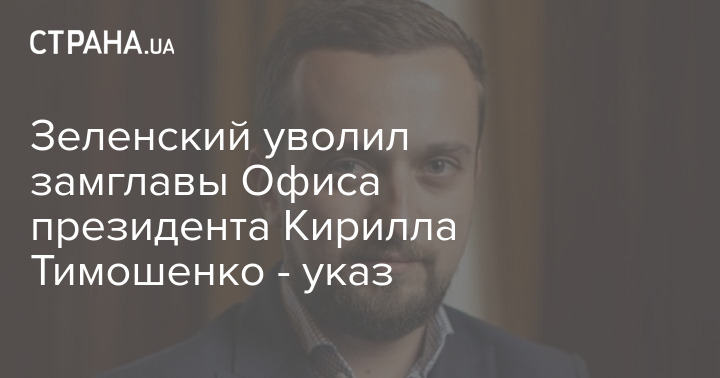 Президент Украины Владимир Зеленский издал указ об увольнении Кирилла Тимошенко с поста замглавы Офиса президента.