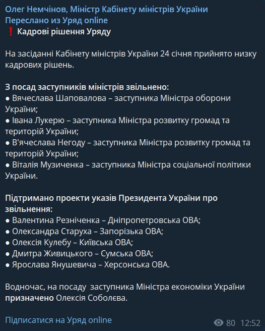 Кабмин на заседании во вторник, 24 января, принял ряд кадровых решений по увольнению замов министров, а также глав ОВА.