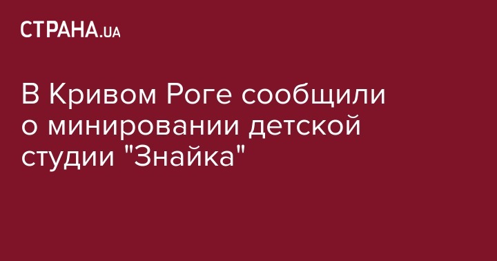 В пятницу, 25 ноября неизвестные сообщили о заминировании помещения детской студии "Знайка" в Кривом Роге. заминировано. Об этом сообщает УНН со ссылкой на пресс-секретаря управления ГосЧС в Днепропетровской области Дарья Гречищева.