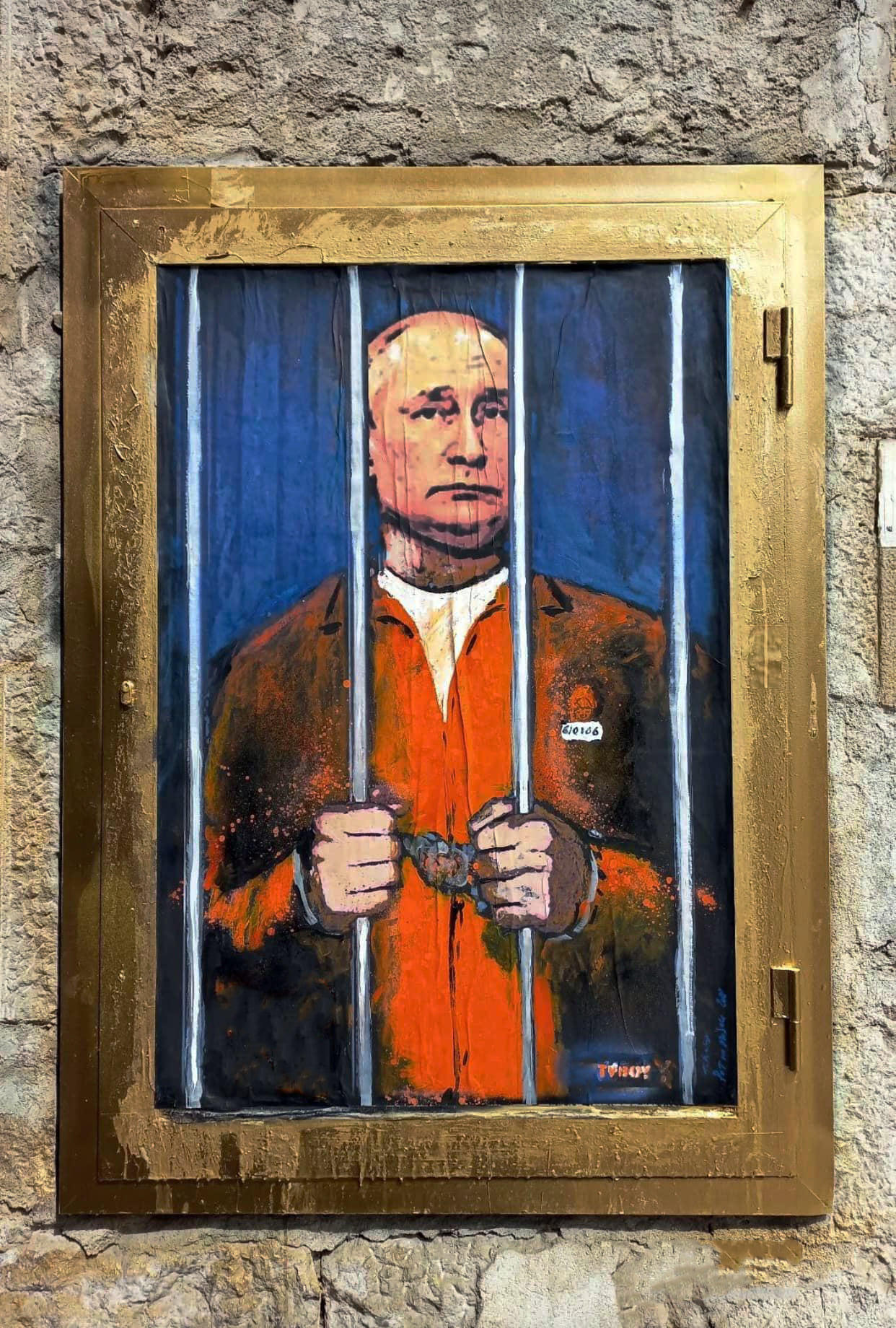 Одной из самых известных работ TvBoy является мурал с Путиным за решеткой в оранжевой робе с наручниками на руках. Он расположен в Барселоне на площади Sant Jaume возле мэрии.