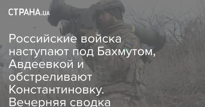 Генеральный штаб Вооруженных сил Украины опубликовал оперативную сводку с фронта по состоянию на 18:00 28 января. Сообщается, что российские войска наступают под Бахмутом, Авдеевкой и обстреливают Константиновку.
