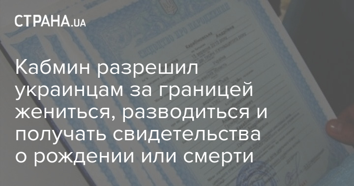 Кабмин разрешил украинцам за границей жениться, разводиться и получать свидетельства о рождении или смерти