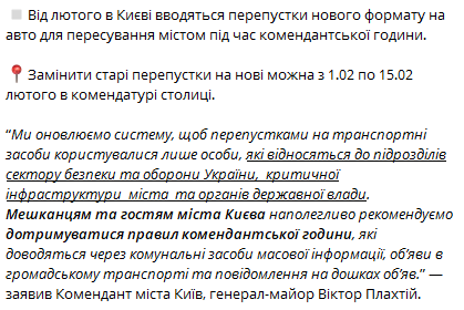 Заменить пропуск на новый можно с 1 по 15 февраля в комендатуре Киева.