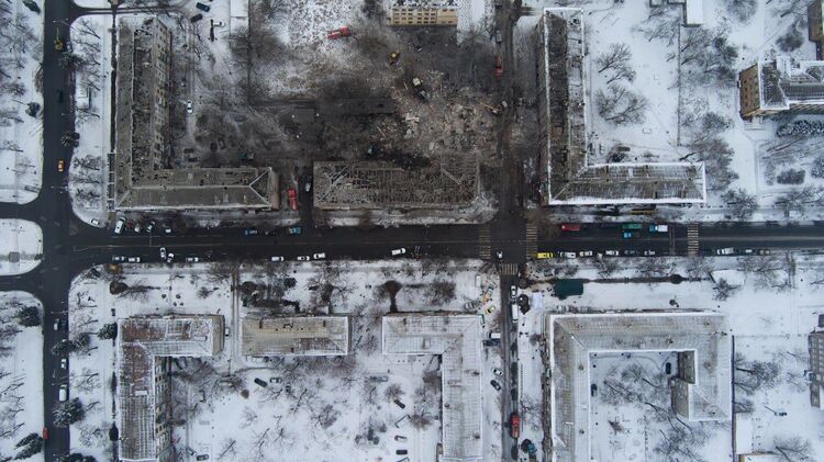 В Сети появилось фото уничтоженного ракетой дома в Краматорске с высоты птичьего полета.