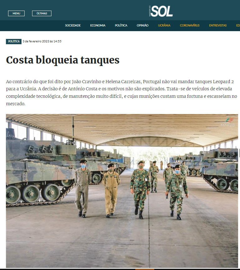 "Португалия могла бы предложить четыре или пять танков, но у нас даже нет боеприпасов. Они очень дорогие. Самые дешевые стоят по 10 000 евро каждый. Боевой танк в Украине делает 60 выстрелов в день. Теперь представьте, что 300 танков [число, запрошенное Зеленским] делают по 60 залпов. Кто производит боеприпасы? Если 300 танков стреляют хотя бы 40 снарядами в день, это уже стоит 120 миллионов евро. Представьте себе, в год почти 44 миллиарда евро! А если танк останавливается из-за поломки или отсутствия запчастей, он просто бросается. И есть опасения, что танки попадут в руки россиян, которые откроют для себя системы высокого уровня безопасности, которыми они оснащены", - описывает источник ситуацию.