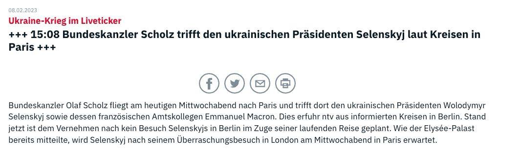 Канцлер Германии Олаф Шольц, который сегодня заявил, что не отправит подлодки и военные самолеты Украине, отправится в Париж с целью вечером встретиться с президентом Украины Владимиром Зеленским и президентом Франции Эммануэлем Макроном.