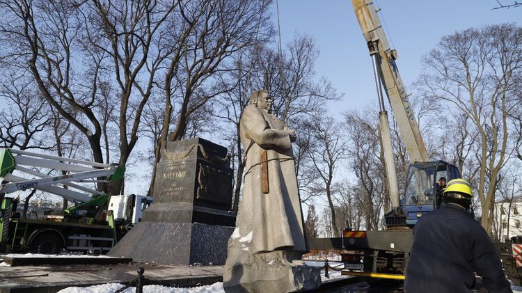 Демонтаж памятника Ватутину из Мариинского парка в Киеве. Фото: kyivcity.gov.ua