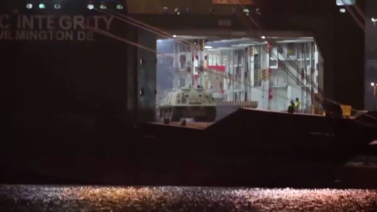 Судно Arc Integrity c ними и другой военной техникой накануне пришвартовалось в порту немецкого города Бремерхафен.