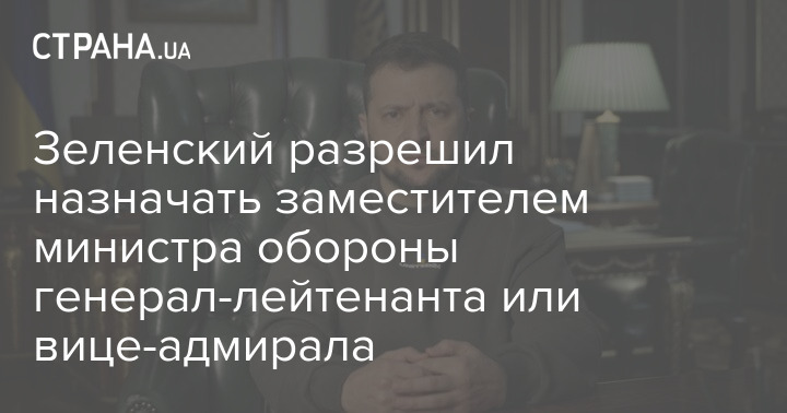 Владимир Зеленский подписал указ, согласно которому первым заместителем министра обороны Украины можно назначать военнослужащего в звании генерал-лейтенанта или вице-адмирала.