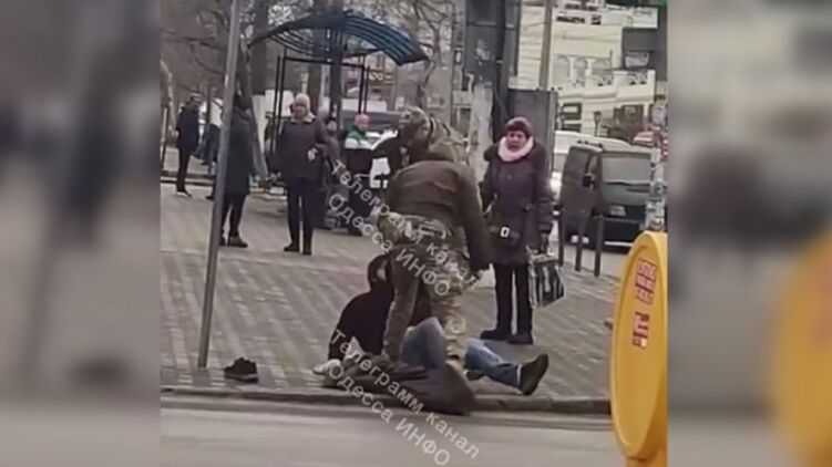 В Одессе военные жестко положили мужчину на землю. Скриншот видео
