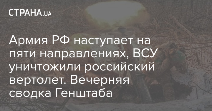 Армия РФ наступает на пяти направлениях, ВСУ уничтожили российский вертолет. Вечерняя сводка Генштаба