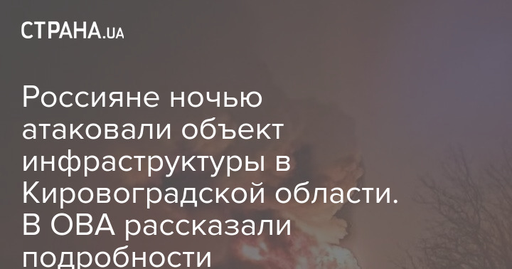 Россияне ночью атаковали объект инфраструктуры в Кировоградской области. В ОВА рассказали подробности