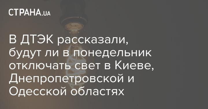 В ДТЭК рассказали, будут ли в понедельник отключать свет в Киеве, Днепропетровской и Одесской областях