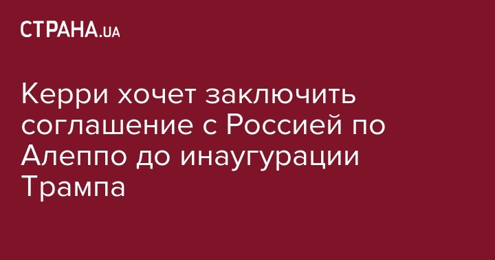 Керри хочет заключить соглашение с Россией по Алеппо до инаугурации Трампа