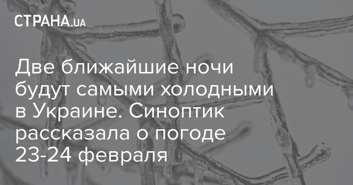 По ее словам, две ближайшие ночи будут в Украине самыми холодными. А с 25 февраля потеплеет, отметила Диденко.