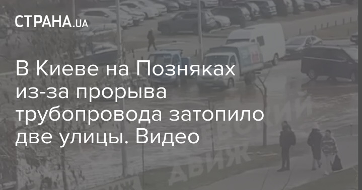 На столичных Позняках прорвало трубопровод, соседние улицы затопило. Фото: скриншот с видео