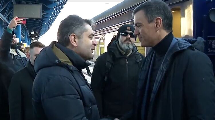 Перебийнис встретил Санчеса на киевском вокзале. Испанский премьер прибыл поездом.