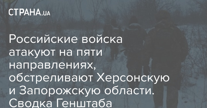 Российские войска атакуют на пяти направлениях, обстреливают Херсонскую и Запорожскую области. Сводка Генштаба