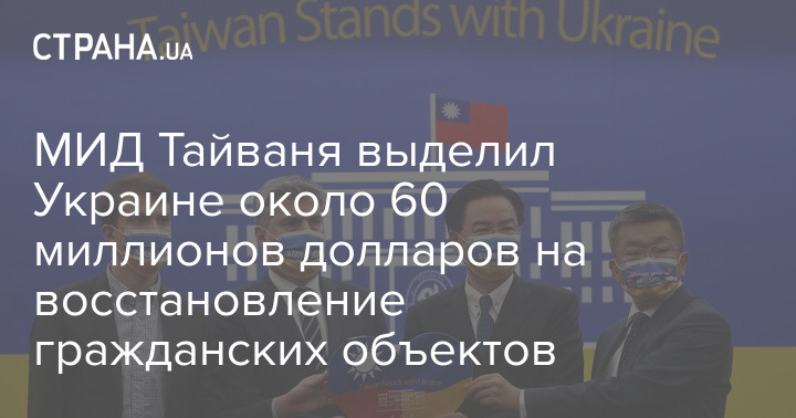 МИД Тайваня выделил Украине около 60 миллионов долларов на восстановление гражданских объектов