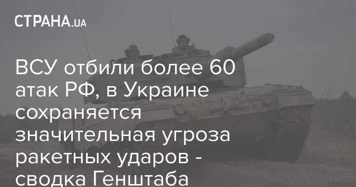 ВСУ отбили более 60 атак РФ, в Украине сохраняется значительная угроза ракетных ударов - сводка Генштаба